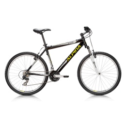 ALPINA ECO M10 black/yellow. rám: KELLYS Protec 6061 Sport Geometry; velikost rámu: 395mm (15.5") /445mm (17.5")/ 495mm (19.5"); vidlice: SR SUNTOUR M3020, A, 75mm; hlav.složení: water resistant 1, 1/8"; střed.složení: VP cartridge (120mm); kliky: PROWHEEL (42x34x24); řazení: SHIMANO SL, RS35 Revoshift; přesmykač: SHIMANO TY10 (31.8mm); měnič: SHIMANO TX35; počet převodů: 21; pastorky: SHIMANO MF, TZ21, 7 (14, 28); řetěz: KMC Z51 (110 links); brzdy: APSE alloy V, brake; brzdové páky: APSE; náboje: KELLYS alloy Q/R (32 dier); ráfky: KELLYS Draft 559x19 (32 dier); výplet kola: steel U.C.P.; pláště: KELLYS Cobra 26x2.0; představec: Alloy A, head (diam 28.6mm); řídítka: steel (diam 25.4mm); rukojete: kraton; sedlovka: steel (diam 27.2mm); sedlo: KBIX DriveLine PRO, Comp; pedály: nylon.