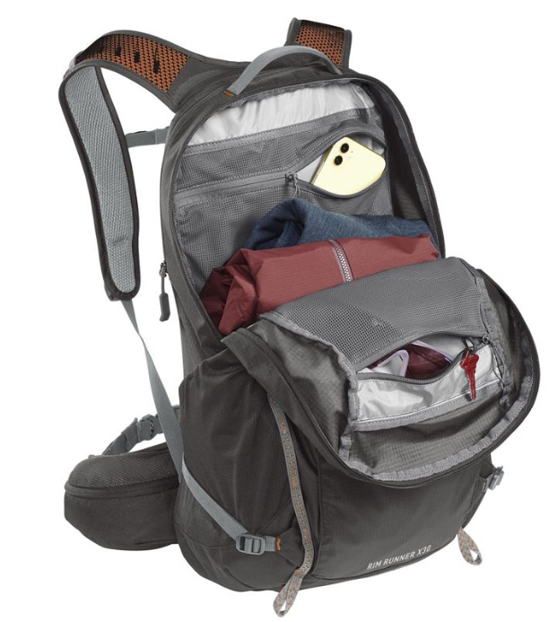 VLASTNOSTI odvětraný bederní pás s kapsami, organizér na drobnosti, boční pružné kapsy, pružná venkovní kapsa, nastavitelný hrudní popruh, kompresní popruhy, klip na klíče, držák na hadičku rezervoáru, kompatibilní s vodním rezervoárem Crux™ nebo Fusion™