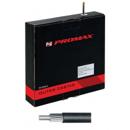 Popis produktu bowden PROMAX 5mm řadící, černý, v kartonu(servisní balení po 30m=min.obj.množství)podélně vinutý bowden, teflonová vložka, dvojitě opletený, černý, balení 30 m, cena za box