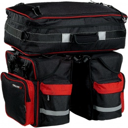 Brašna na nosič s velkým objemem pro náročného uživatele na delší cesty vyrobené z polyesteru s impregnací proti promoknutí.