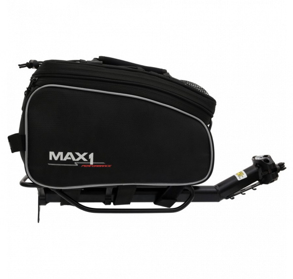 Set brašny a nosiče na sedlovku MAX1 Logistic II.Set obsahuje nosič na sedlovku a vrchní brašnu MAX1 Rackbag L.Nosnost brašny je 8 kg.Specifikace brašny:- víceúčelová brašna na nosič s nastavitelným objemem (rozepnutím horního zipu)- upínání k nosiči pomocí suchých zipů- vyztužené bočnice pro větší stabilitu nákladu- velká vnitřní kapsa + přihrádka na pláštěnku + venkovní síťka pro drobné věci- popruh pro přenášení na rameni- pasuje na většinu standardních typů nosičů- součástí brašny je pláštěnka- na víku brašny je elastická stahovatelná guma pro umístění např. větrovky- reflexní prvky viditelné 360st. + extra reflexní prvky v zadní částiRozměry brašny:(délka) 32,5 cm(šířka) 15,5 cm(výška) 19 cm (měřeno v nejvyšším bodě)- objem brašny: 9,6l- hmotnost: 850gSpecifikace nosiče:- tento nosič je určen pro lehkou turistiku- jednoduchá montáž pomocí rzchloupínacího mechanismu bez nářadí- nosiče je svařen z hliníkové trubky, nýtované platformy s Al rámem- je určen pro téměř všechny sedlové trubky s průměrem 25-32 mm- nedoporučujeme pro sedlovky z uhlíkových kompozitů!!- nosič má držák na odrazku nebo blikačkuObsah nosiče:- nosič- součástí nosiče je upevňovací gumaParametry:- hmotnost: 670 g- nosnost do 9 kg- sedlové trubky s průměrem 25-32 mmVíce na: MAX1.CZDovozcem značky MAX1 do ČR je společnost Cyklomax, spol. s r.o.