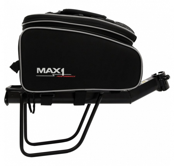 Set brašny a nosiče na sedlovku MAX1 Logistic XL.Set obsahuje nosič na sedlovku a vrchní brašnu MAX1 Rackbag XL.Nosnost brašny s nosičem je 7 kg.Specifikace brašny:- víceúčelová brašna na nosič s nastavitelným objemem (rozepnutím horního zipu)- zvětšení objemu pomocí výklopných bočnic- upínání k nosiči pomocí suchých zipů- vyztužené bočnice pro větší stabilitu nákladu- velká vnitřní kapsa + přihrádka na pláštěnku + venkovní síťka pro drobné věci- popruh pro přenášení na rameni- pasuje na většinu standardních typů nosičů- součástí brašny je pláštěnka- na víku brašny je elastická stahovatelná guma pro umístění např. větrovky- reflexní prvky viditelné 360st. + extra reflexní prvky v zadní částiRozměry brašny:(délka) 32,5 cm(šířka) 21,5 cm(výška) 21,5 cm (měřeno v nejvyšším bodě)- objem brašny: 32l- hmotnost: 1060gSpecifikace nosiče:- tento nosič je určen pro lehkou turistiku- nosiče je svařen z hliníkové trubky, nýtované platformy s Al rámem- je ideální pro případ, kdy nelze na kolo připevnit standardní nosiče (např. celoodpružené kolo)- je určen pro téměř všechny sedlové trubky s průměrem 25-32 mm- nedoporučujeme pro sedlovky z uhlíkových kompozitů!!- nosič má držák na odrazku nebo blikačku- montáž i demontáž je rychlá a snadná- upínání pomocí rychloupínacího šroubu a klipu- pro montáž na jízdní kolo nepotřebujete žádné nářadíObsah nosiče:- nosič- součástí nosiče je upevňovací gumaParametry:- hmotnost 0,65 kg- nosnost do 9 kg- sedlové trubky s průměrem 25-32 mm- rozměry: ložná plocha 130 × 370 mm výška bočnic 200 mmVíce na: MAX1.CZDovozcem značky MAX1 do ČR je společnost Cyklomax, spol. s r.o.
