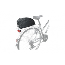 Brašna na nosič černá KLS SERRANO YKK. Brašna na zadní nosič vyrobená z polyesteru s impregnací proti promoknutí, Waterproof design, Snadné přichycení ke konstrukci zadního nosiče pomocí suchých zipů a upevnění na sedlovku kola popruhem s nastavitelnou délkou pro různé typy nosičů, Vyztužené stěny s vnitřním polstrováním chrání vnitřní obsah proti otřesům a poškození, Vrchní díl s elastickým popruhem, vnitřní síťované oddělení a malé oddělení pro drobnosti a klíče, vnější oddělení se zipem, Brašna má 3M reflexní pruh pro blikačku pro zvýšení bezpečnosti, Ramenní popruh, umožňuje nosit brašnu na rameni, Všechny zipy použity pro tento model jsou od výrobce YKK, Objem: cca 8 l, Rozměr: 37 x 14 x 15 cm.