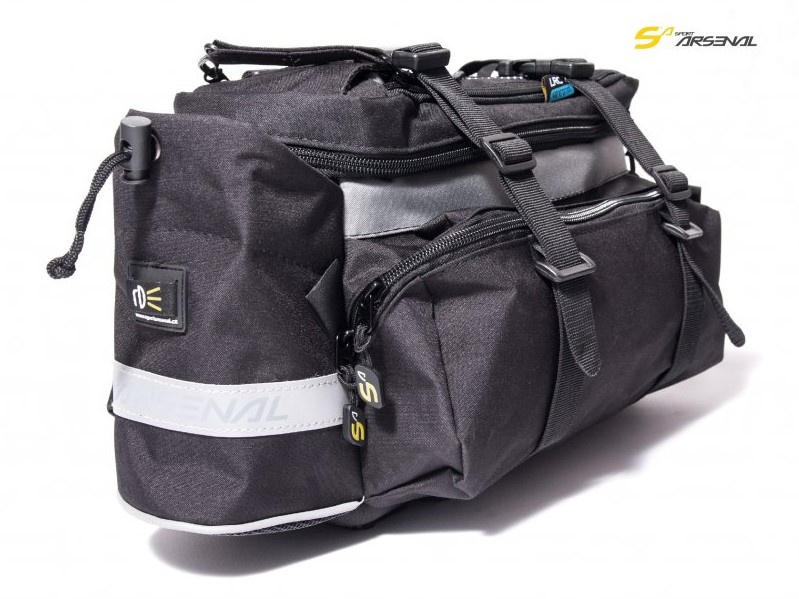 Víceúčelová brašna na zadní, nebo přední nosič s možností zvětšení objemu brašny - v případě rozepnutí horního zipu. Brašna má jednu velkou vnitřní kapsu a dvě postranní vnější kapsy na zip pro praktické rozložení nákladu. Nasazení brašny je snadné, za pomoci suchých zipů. Dotažením dvou kompresních popruhů zajistíte stažení vezeného nákladu.