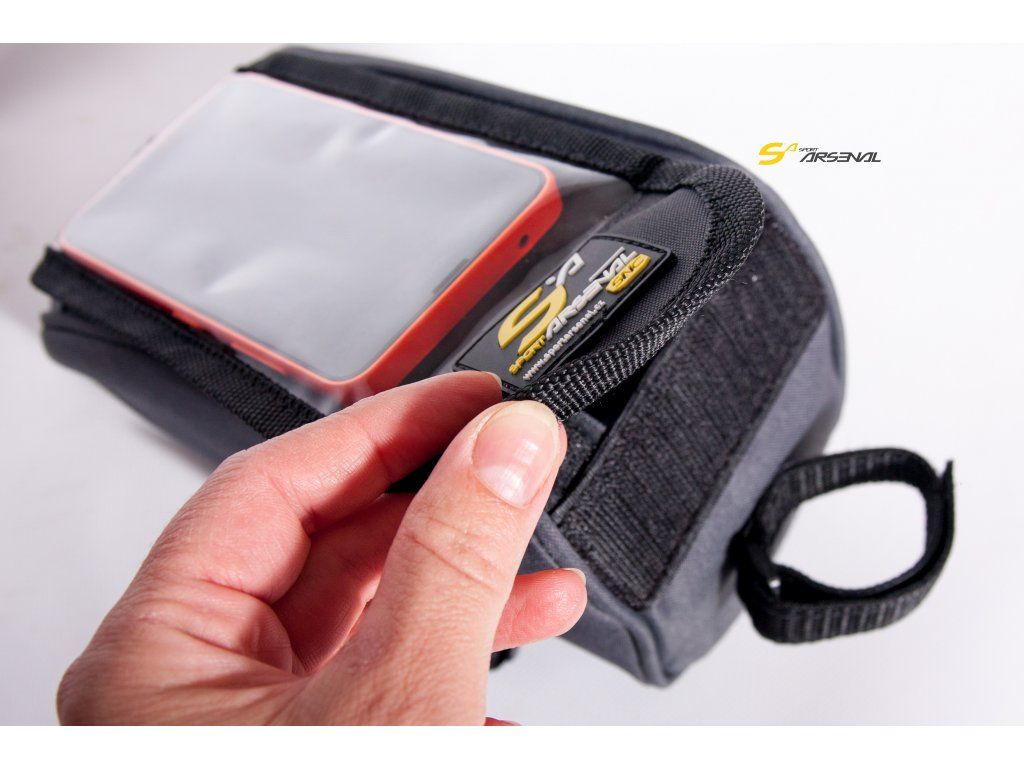 Brašna na přední část rámu pro smartphone, powerbanku apod. Praktická objemná brašna na veškeré nezbytnosti, které je třeba mít stále na očích (mobilní telefon, kompaktní fotoaparát, peněženka, klíče, nářadí).
