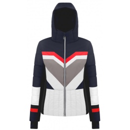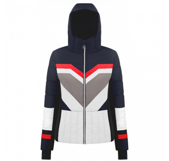 Sportovní a grafický vzhled s tímto štíhlým střihem a stylovou lyžařskou bundou ve vícebarevných kombech. Její zadní a boční strany jsou zcela v trendu. Navrženo se stylovým střihem, odnímatelnou a nastavitelnou kapucí, vnitřní manžetou s palcovou dírkou pro maximalizaci snadnosti pohybu nositele. Jeho nadměrná výšivka loga na podšívce dává této bundě dokonalý dotek Poivre Blanc.