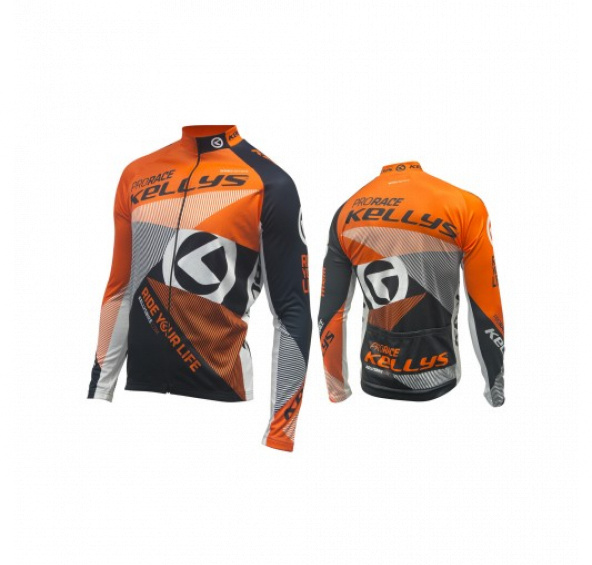 Dres KELLYS PRO Race dlouhý rukáv orange - M (016). Funkční zateplený dres je vhodný pro jízdu v chladnějším počasí a v kombinaci s dalším funkčním KELLYS oblečením sa dá nosit v průběhu celého roku, Vyrobený ze 100% polyesteru, má optimální termo, regulační vlastnosti, je prodyšný, lehký, odvádí vlhkost a pot, materiál je jemný, měkký, dobře se nosí. Dres má dlouhé raglánové rukávy, na předním dílu zip, na zadním dílu jsou 3 kapsy..