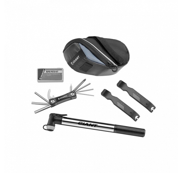 sada obsahuje: - podsedlovou brašničku Giant ST Bag (objem 0,7 litru) - 9-funkční kapesní nářadí - pumpičku - 2 montpáky - sadu lepení pro opravu defektu (12 samolepících záplat a smirkový papír)