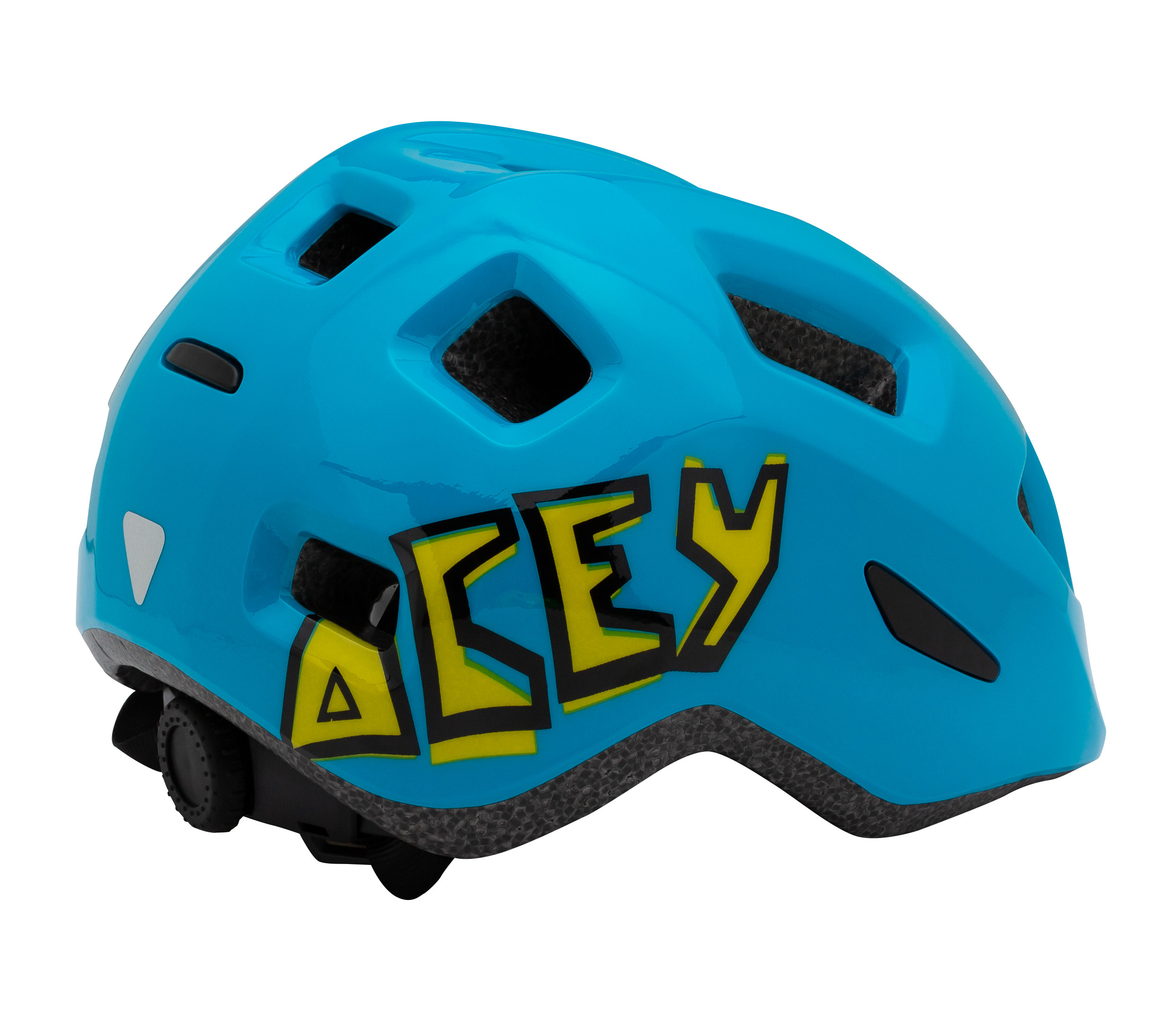 ACEY je stylová a odolná dětská přilba určena nejmenším jazdcům. Vyrobena je techlologií In mold. Přilba má 10 větracích otvorů, které jsou navrženy tak, aby lépe odváděli teplo. Acey drží pevně na hlavě díky  upínacímu systému s velkým nastavovacím kolečkem, které je lehko přístupné i pro rodiče. Příjemná antibakteriální výstlľka neomezuje odvětrání přilby Zvýšená bezpečnost je zajištěna díky reflexním prvkům.