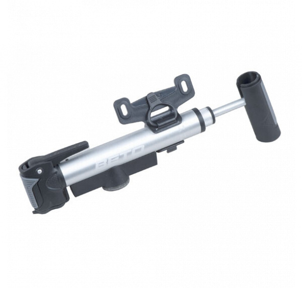 Hliníková teleskopická pumpa s manometrem a pojistnou páčkou pro pumpování. Duální hlava AV/FV. Výklopná pogumovaná T- rukojeť a hlava pro pohodlnější pumpování. Max tlak 100Psi. Přepínání velký tlak / velký objem. Délka 25cm.