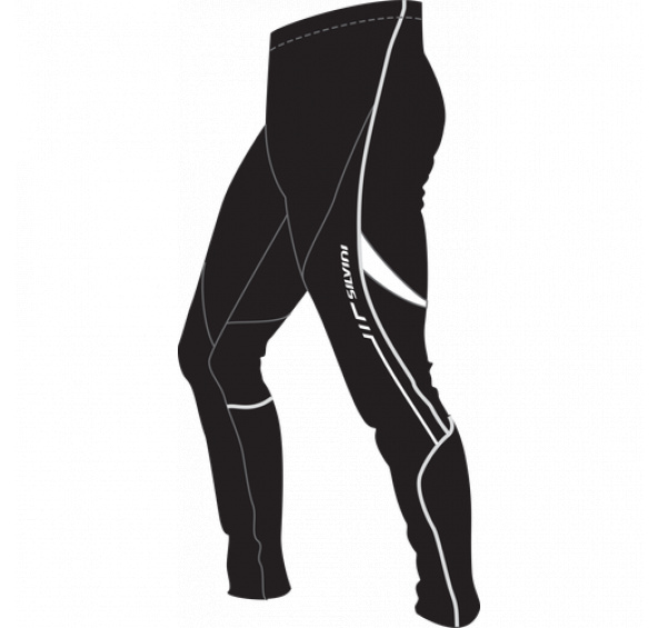 reflexní prvky, kapsička na zip na zadním díle, zip v dolním kraji nohavic, plochý šev, protiskluzový silikonový pásek, šňůrka v pase, elastický zadní díl u kalhot