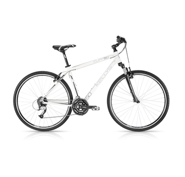 KELLYS Cliff 50 White. rám: KELLYS Crosslite 6061 alloy; velikost rámu: 430mm (17") / 480mm (19") / 530mm (21"); vidlice: SR SUNTOUR NEX HLO, 63mm, coil / Speed Lockout; hlav.složení: semi, integrated; střed.složení: cartridge (122mm); kliky: SR SUNTOUR XCE (48x38x28), length 170mm (17"), 175mm 19", 23"); řazení: SHIMANO ST, EF65, 8 EZ, fire Plus; přesmykač: SHIMANO M191 (31.8mm); měnič: SHIMANO Acera M360; počet převodů: 24; kazetové pastorky: SHIMANO CS, HG200, 8 (12, 32); řetěz: KMC Z7 (114 links); brzdy: APSE Artek V, brake; brzdové páky: SHIMANO ST, EF65, 8 EZ, fire Plus; brzdové lanká: DRIVING Force SCS (SlickCableSystem); náboje: KLS Drive (32 holes); ráfky: KLS Draft 622x19 (32 holes / eyelets); výplet kola: U.C.P. steel; pláště: INNOVA 44, 622 (700x42C); představec: KLS Cross, adjustable, diam 28.6mm / bar bore 25.4mm / length 90mm (17"), 110mm (19", 21"), 130mm (23"); řídítka: KLS Cross RiseBar, diam 25.4mm / width 620mm (17", 19"), 640mm (21", 23"); rukojete: KLS Advancer 2Density; sedlovka: KLS Expert, diam 27.2mm / length 350mm; sedlo: KLS CrossLine; pedály: VP NonSlip, alloy; hmotnost kg: 14,15 (19").
