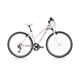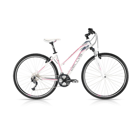 KELLYS Phutura 10 White. rám: KELLYS Crossforce Lady Lite 6061 3ple butted, SCG (Sport Cross Geometry); velikost rámu: 432mm (17") / 480mm (19"); vidlice: SR SUNTOUR NEX HLO, 63mm, coil / Speed Lockout; hlav.složení: KLS Expert semi, integrated; střed.složení: cartridge (113mm); kliky: SR SUNTOUR XCM (48x36x26), length 170mm (17"), 175mm (19"); řazení: SHIMANO Alivio ST, M4000 Rapidfire Plus; přesmykač: SHIMANO M191 (31.8mm); měnič: SHIMANO Alivio M4000; počet převodů: 27; kazetové pastorky: SHIMANO CS, HG300, 9 (11, 34); řetěz: KMC X9 (114 links); brzdy: TEKTRO V, brake; brzdové páky: SHIMANO Alivio ST, M4000 Rapidfire Plus; brzdové lanká: DRIVING Force SCS (SlickCableSystem); náboje: KLS Drive (32 holes); ráfky: KLS Draft 622 x 19 (32 holes / eyelets); výplet kola: stainless steel; pláště: INNOVA 44, 622 (700x42C); představec: KLS Cross, adjustable, diam 28.6mm / bar bore 25.4mm / length 90mm (17"), 110mm (19"); řídítka: KLS Cross RiseBar, diam 25.4mm / width 620mm; rukojete: KLS LockOn foam; sedlovka: KLS Expert, diam 27.2mm / length 350mm; sedlo: KLS Mirage Women; pedály: VP NonSlip, alloy; hmotnost kg: 14,05 (17").