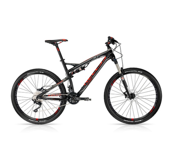 KELLYS Tyke 30. rám: KELLYS SXC Marathon 27.5 (650B) 6061 (pevná osa 12x142mm) / zadní zdvih 120mm; velikost rámu: S (17") / M (19") / L (21"); vidlice: ROCK SHOX Recon Silver TK (27.5), 120mm, Solo Air / PopLoc Remote Lockout / Maxle Lite 15mm thru axle; zadní tlumič: ROCK SHOX Monarch RL, Solo Air / Rebound / Open, Pedal (184x44mm); hlav.složení: FSA 1.5 integrated; střed.složení: SHIMANO BB52; kliky: SHIMANO Deore M615 (38x24), length 170mm (S), 175mm (M, L); řazení: SHIMANO Deore SL, M610 Rapidfire Plus; přesmykač: SHIMANO SLX M676, D (direct mount); měnič: SHIMANO Deore XT M781; počet převodů: 20; kazetové pastorky: SHIMANO CS, HG50, 10 (11, 36); řetěz: KMC X10L (110 links); brzdy: AVID DB3 Hydraulic Disc; brzdové kotouče: 160mm front / 160mm rear; brzdové páky: AVID DB3; náboje: KLS Stormer 15DH, FR Disc / FORMULA Disc (32 holes); pevná osa: ROCK SHOX Maxle Lite, 15x100mm front / 12x142mm rear; ráfky: KLS Cartel Disc 584x21 (32 holes); výplet kola: stainless steel black; pláště: SCHWALBE Rapid Rob 57, 584 (27.5x2.25); představec: KLS Expert, diam 28.6mm / bar bore 31.8mm / 7° / length 70mm (S), 80mm (M), 90mm (L); řídítka: KLS Master RiseBar, diam 31.8mm / width 680mm (S), 700mm (M), 720mm (L); rukojete: KLS Advancer LockOn gel; sedlovka: KLS Expert, diam 31.6mm / length 350mm (S), 400mm (M, L); sedlo: KLS Falcon; pedály: KLS Master, alloy; hmotnost kg: 14,40 (M).