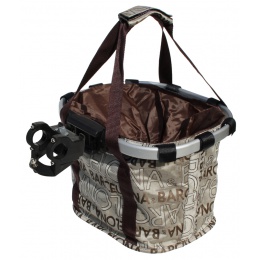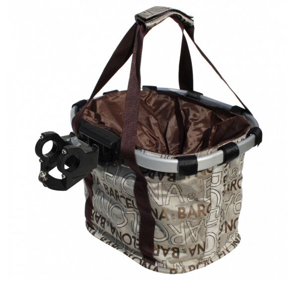 Koš na kolo látkový, plastový upevnění na řidítka pomocí rychloupínacího klipu.Vhodné pro turistiku, do města nebo pro malá plemena psů. - pro řidítka 22.2 - 31.8mm- max. nosnost 6 kg- rozměry šxdxhl 25 x 35 x 24 cm - barva: krémová s atraktivním potiskem- výbava látkový kryt pro zakrytí obsahu, snadné stažení pomocí provázku a klipu