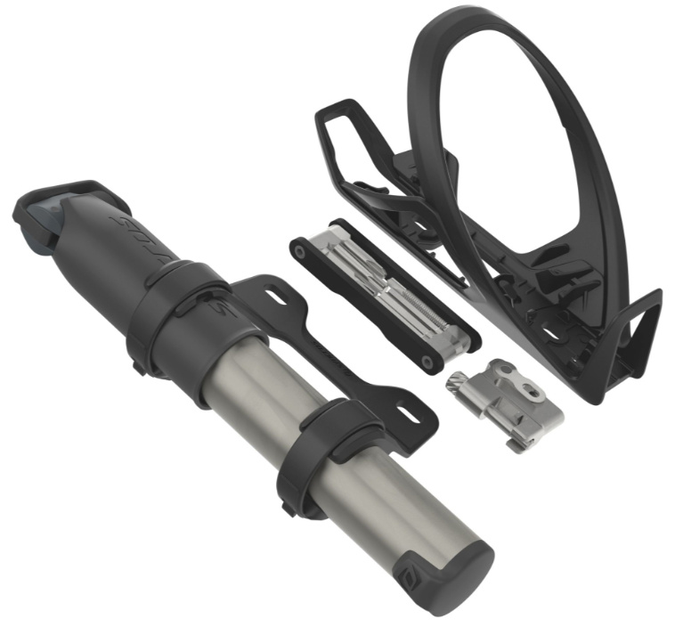• Lehký a integrovaný. Náš košík na lahev iS Cache Cage je navržen tak, aby pomohl i při menších nesnázích na trailu. Pumpička, multiklíč s nýtovačem řetězu a košík, vše je integrováno do jednoho „záchranného“ celku. Košík je vybaven bočnicí, kterou lze překlopit podle toho, jestli potřebujete přístup zprava, nebo zleva, nebo chcete-li košík namontovat na sedlovou trubku, kde potřebujete opačný přístup. S bočnímu přístupem se košík vejde i do těsnějšího prostoru celoodpruženého rámu. Díky nízké hmotnosti se hodí i na závodní XC kola. Byl navržen tak, aby dokonale fungoval na SCOTT Sparku, který má v oblasti spodní rámové trubky méně prostoru. Multiklíč obsahuje 8 kovaných a obráběných bitů, které jsme ocrhánili povrchovou úpravou odolnou vůči korozi a prodloužili tak jejich životnost. Minimalistický nýtovač řetězu je z důvodu zachování nízké hmotnosti součástí multiklíče. Pumpička je optimalizovaná na horské kolo, dodá rychle velký objem vzduchu, abyste se mohli urychleně vrátit na trať.