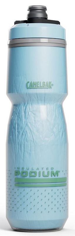 Izolované lahve CamelBak Podium Chill udrží díky dvojité stěně teplotu nápoje 2x déle ve srovnání s normální lahví. Jsou vyrobeny z BPA, BPS a BPF-free polypropylenu, který zajišťuje věrnou chuť nápoje bez plastové pachuti. Díky patentovanému samouzavíracímu náustku Jet Valve z medicínského silikonu voda z lahve nekape na rám. Navíc je vybavena úplným otočným uzávěrem (lock-outem) pro přepravu plných lahví v tašce nebo v autě.