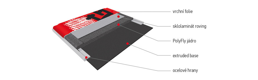 Technologie: Sklolaminát Roving, PolyFly jádro, Vrchní folie, Skluznice Extrudovaná, Ocelové hrany