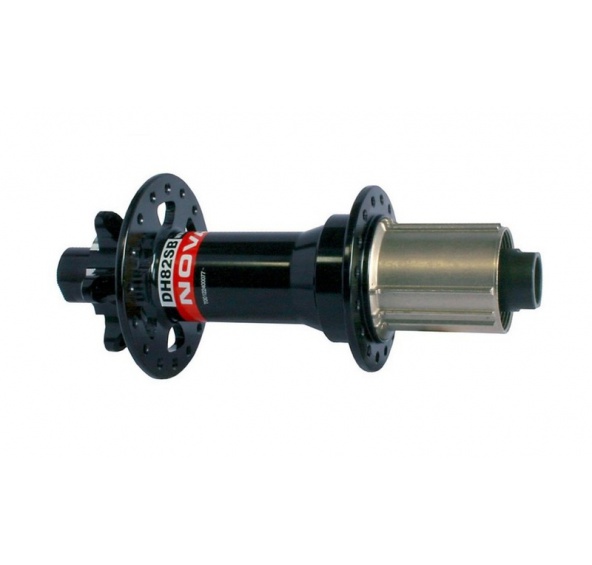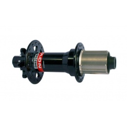 Odlehčený downhillový náboj s asymetrickými přírubami - dodáva se bez pevné 12 mm maticové osky.