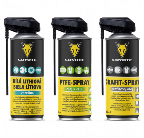 olej COYOTE set 3x400 ml spray (PTFE, Grafit, Lithium)