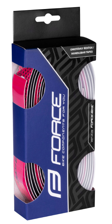 samolepicí s tištěným logem FORCEvčetně zakončovací pásky a zátek FORCE do řidítekmateriál: PU 30% + EVA 70%délka: 2100 mmtloušťka: 2,5 mmhmotnost 1 páru včetně zátek: 80 gbaleno v krabičce FORCE