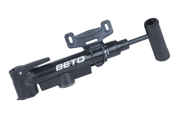 Plastová teleskopická pumpa s manometrem a pojistnou páčkou pro pumpování. Duální hlava AV/FV. Výklopná T- rukojeť pro pohodlnější pumpování. Max tlak 100Psi. Přepínání velký tlak / velký objem. Délka 25cm.