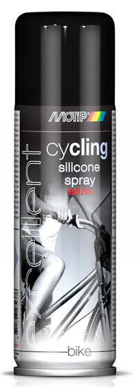 Silikonový sprej k lubrikaci a ochraně plastových a gumových částí jízdního kola, odolný proti vodě, vlhkosti, vlivům počasí, slabým kyselinám a zásadám. Zabraňuje pískání a skřípání plastových dílů. Perfektní mechanická a teplotní stabilita.