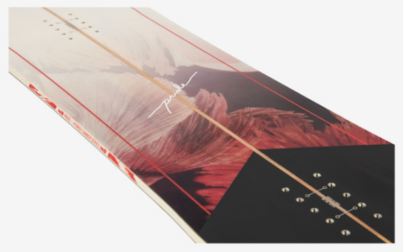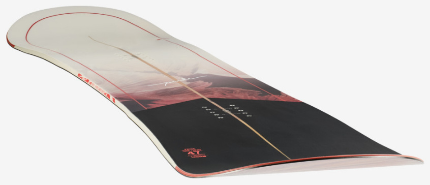 HYBRID CAMBER POP: Složení Hybrid Camber POP se nachází ve dvou různých tvarech, Long Directional pro extra plovoucí a Twin Directional pro all-mountain potěšení: Tato konstrukce se vyznačuje zvýšenou plochou částí a mírným rockerem na špičce a patě, kombinující přilnavost hran s popem a plaváním. .