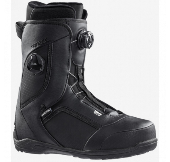 THREE LYT BOA FOCUS je pohodlná, snadno ovladatelná bota se střední flexí a mírným náklonem dopředu. Vložka Perfect Fit má neuvěřitelně přizpůsobivý střih bez otlaků, zatímco dva ovladače BOA® vytvářejí nezávisle nastavitelné zóny pro přizpůsobení s proměnlivým přítlakem na přední část chodidla a svršek. Konstrukce Cuff Cut nabízí pohodlí a přiléhavý střih bez vyboulení a podrážka Treadlyt dodává lehkost a přilnavost za všech podmínek.