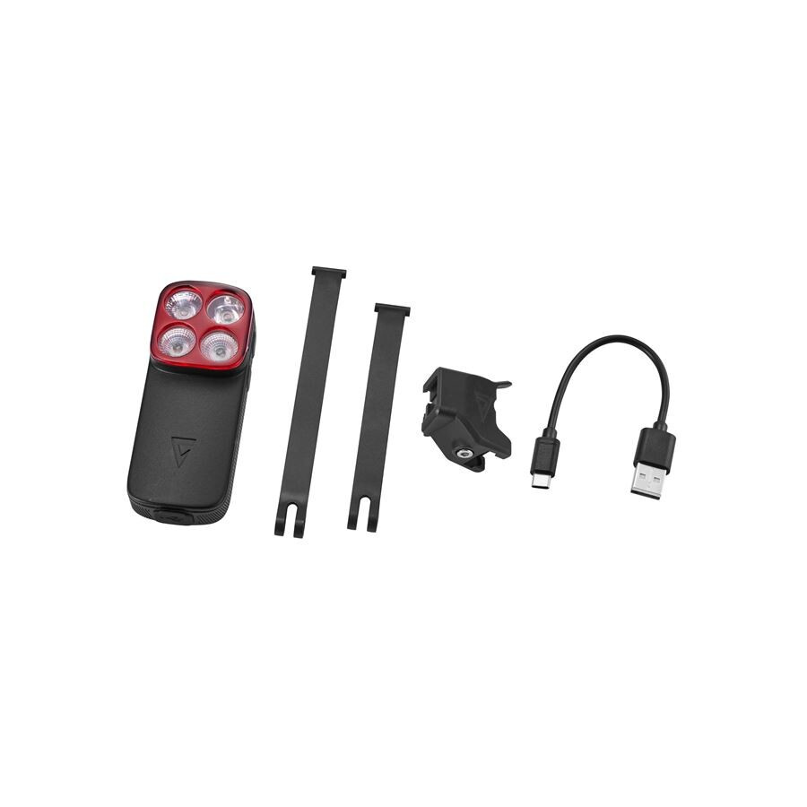 součástí balení je držák na sedlovku a nabíjecí kabel USB-C