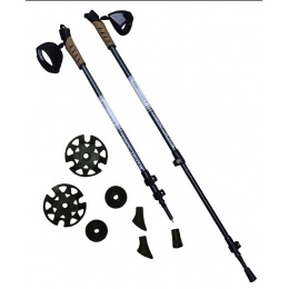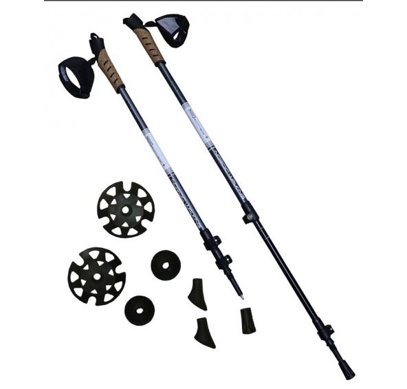 Teleskopické hole 3-dílné - zpevněné ALU tubusy se 40% grafitu, odlehčené , 72 - 145 cm. Korkové rukojeti jsou lehké a příjemné na držení. Upínací pásek na ruce je přizpůsobený tvaru rukou, svou šířkou drží příjemně na rukách a netlačí. Rychloupínací mechanismus umožňuje rychlé nastavení potřebné délky holí. V balení je 1 pár na kartě s příslušenstvím - 2 páry vyměnitelných kroužků, kulaté a oválné gumové koncovky. Hmotnost jedné hole je pouhých 265 gramů. Balení 1 pár na kartě v průhledné folii.